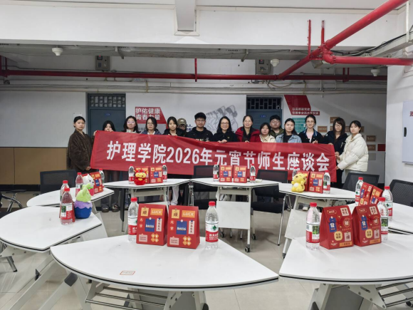 2026年3月3日,正值元宵佳节,为弘扬中华民族传统文化,深入践行雷锋精神,传承红医精神,护理学院在学生宿舍1栋活动室召开了以“红医守初心,元宵话传承”为主题的元宵节座谈会。学院党总支书记杨海英、学工办主任薛惠元及辅导员老师们与学生代表欢聚一堂20余人,共度元宵。此次座谈会特别关注了困难生、外地籍学生及少数民族学生群体。