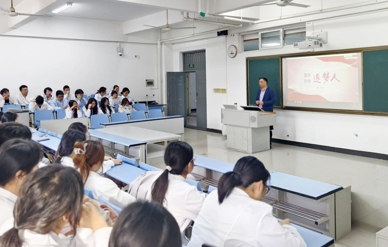 为帮助智慧养老专业学子明晰养老行业发展前景,树立投身银发事业的职业理想,2025年11月21日,重庆市养老协会郭秘书长走进重庆医药高等专科学校护理学院,为2024 级智慧健康养老服务与管理1班和2025级智慧健康养老服务与管理1班共计100余学子带来“重庆养老逐梦人”主题宣讲,以行业视角为同学们点亮职业道路。