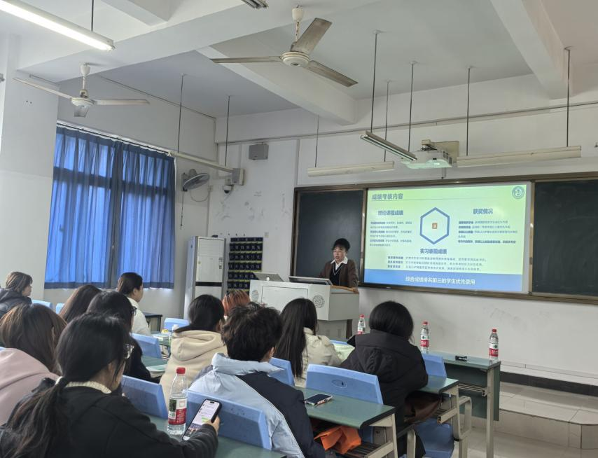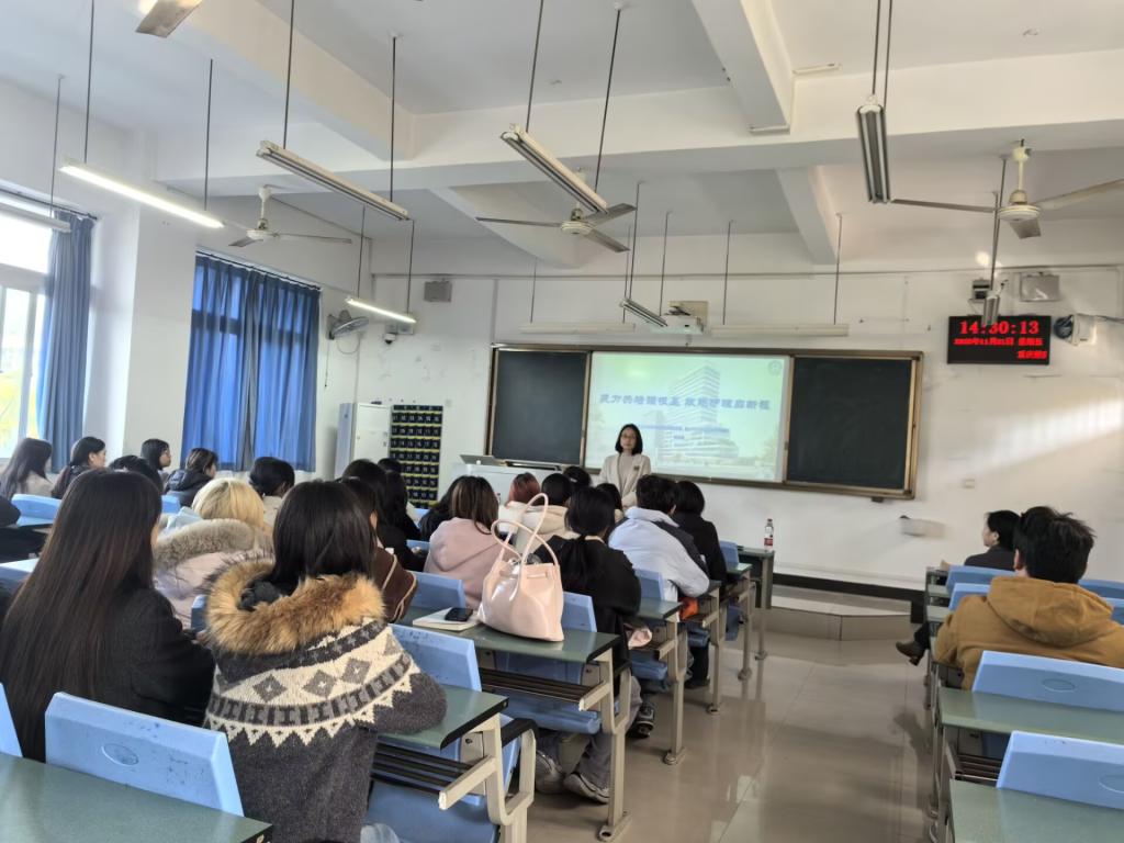熊书记围绕陈家桥医院概况、医院护理工作发展现状、护理质量控制管理体系三大核心内容展开详细介绍。她结合医院发展历程与特色专科建设,让同学们对医院的诊疗实力、服务理念有了直观了解;通过解析护理岗位设置、工作流程及职业发展路径,帮助同学们明晰护理专业的实践方向与价值;同时,重点阐述了医院在护理质量监管、护理安全保障等方面的严格标准,强调了严谨细致、精益求精的职业素养对护理工作的重要性。最后,熊书记表示,陈家桥医院作为学校附属医院,将充分发挥临床教学资源优势,为联合培养班同学提供优质的实践平台与专业指导,助力同学们将理论知识与临床实践深度融合,成长为高素质护理人才。她鼓励同学们珍惜校院合作的宝贵机遇,勤奋学习、刻苦实践,树立正确的职业观与价值观,为未来投身护理事业、守护人民健康打下坚实基础。