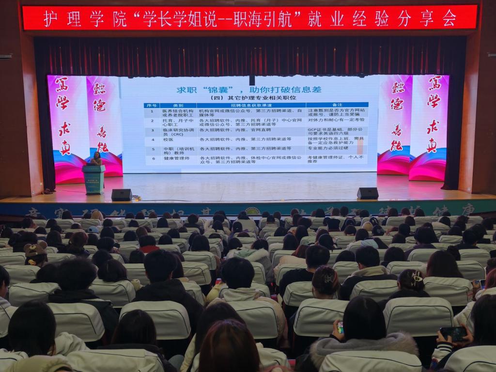 分享会上,雷涵学姐以自身成长轨迹为切入点,生动讲述了从护理专业“菜鸟” 到职场骨干的蜕变历程。她先是回顾了大学期间的实习经历,结合在三甲医院实习时的实操案例,剖析了理论知识与临床实践结合的重要性;随后又梳理了自己的就业路程,从初期求职碰壁的困境,到最终成功入职优质医疗单位的经验,让在场同学深刻感受到了护理岗位求职的挑战与机遇。